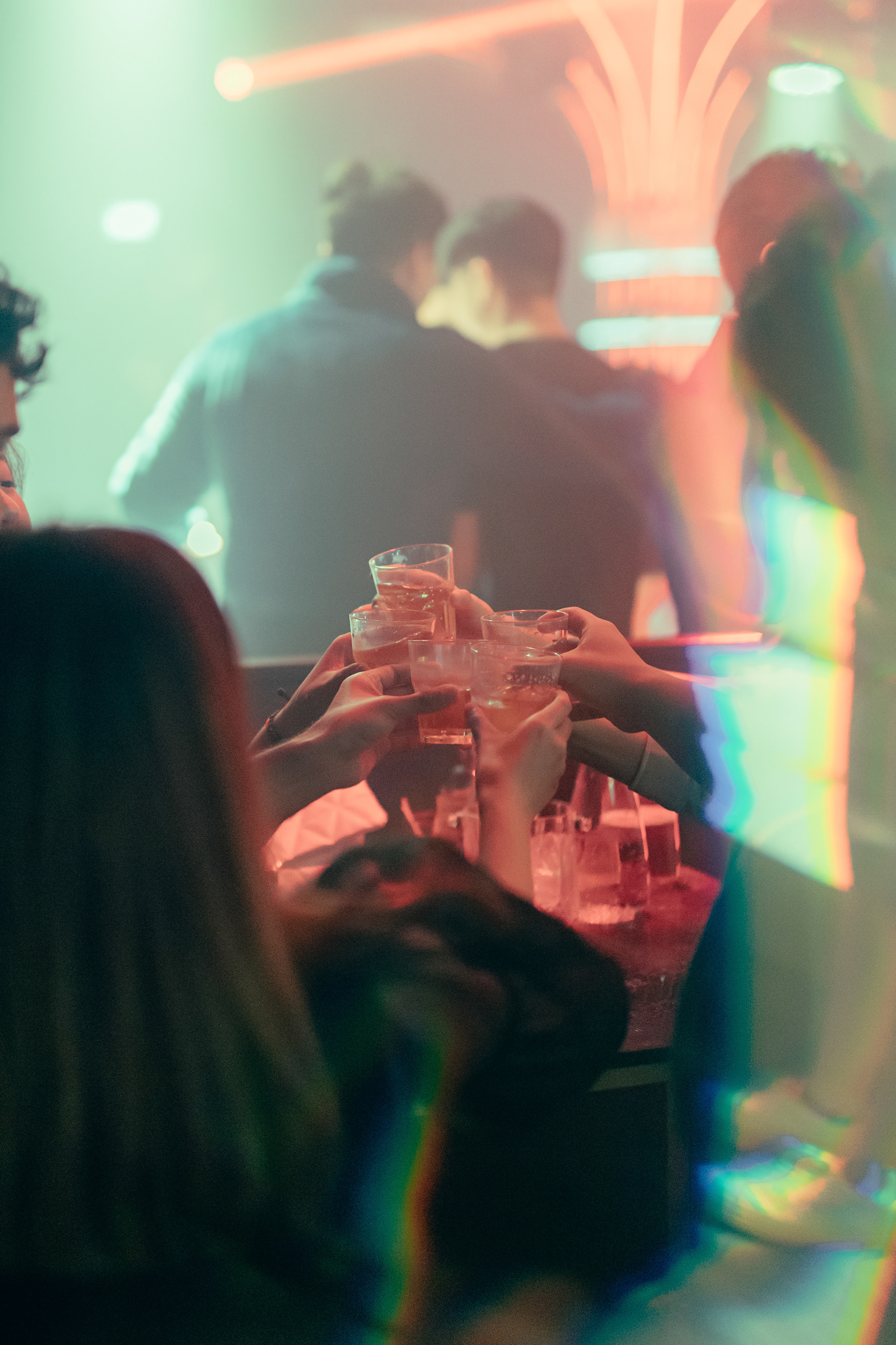 Nightlife photography with artistic and moody portrait approach inspired by venue's branding.